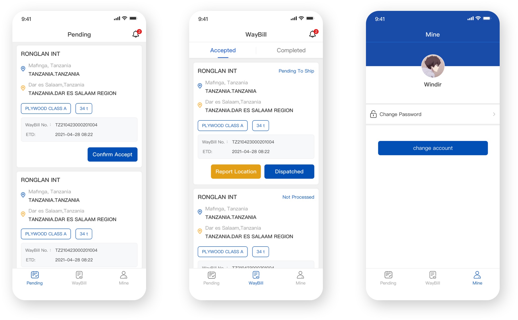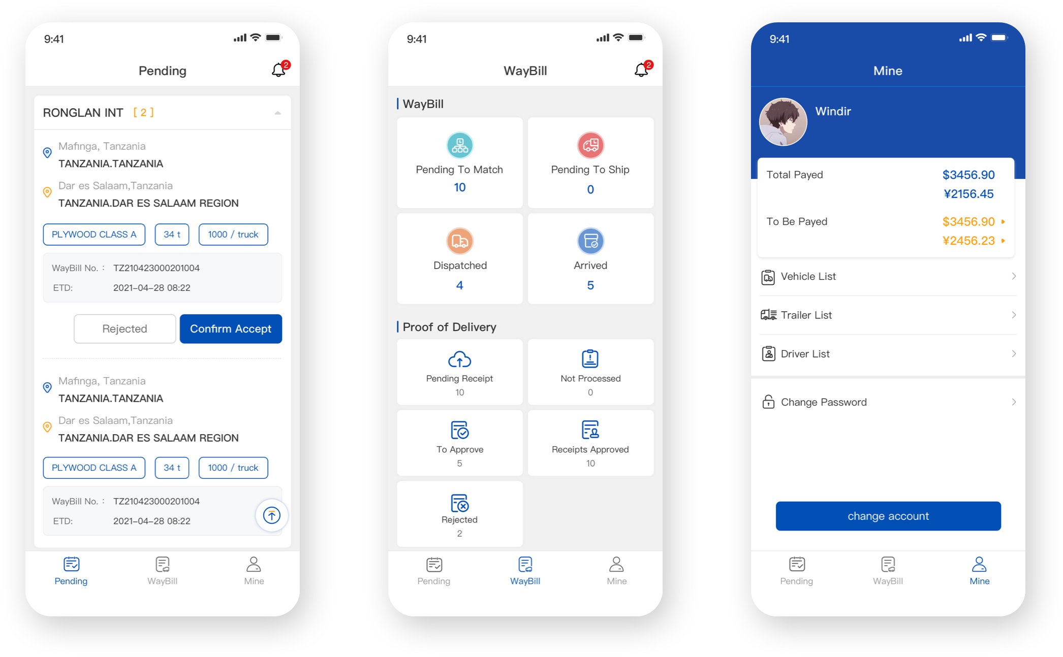 一、非洲车队APP司机端部分页面: