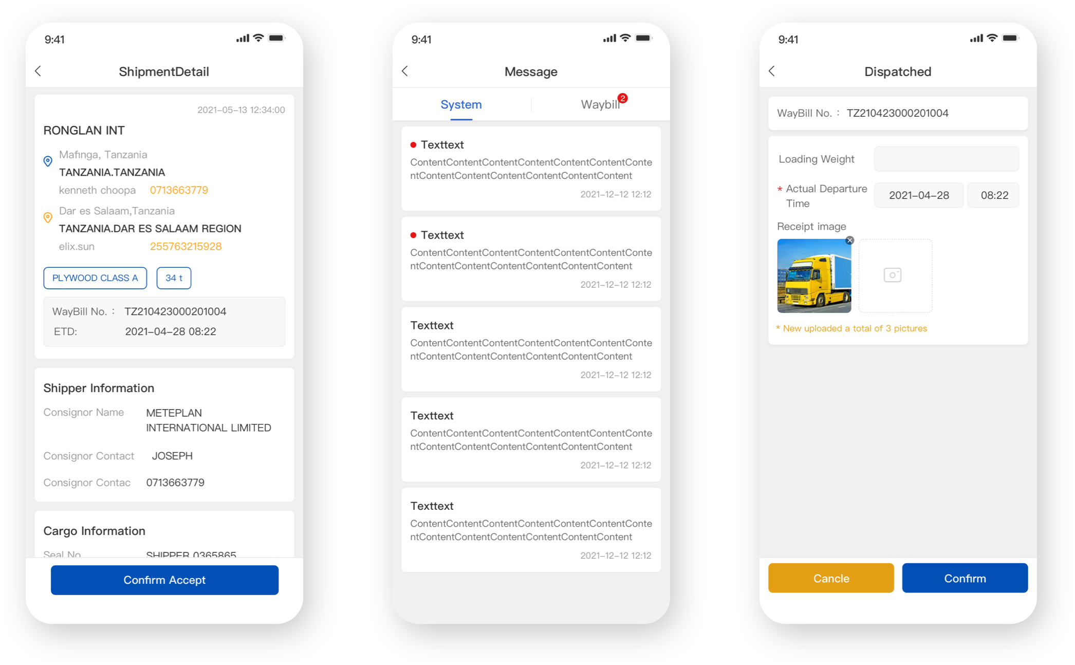 二、非洲车队APP管理端部分页面: